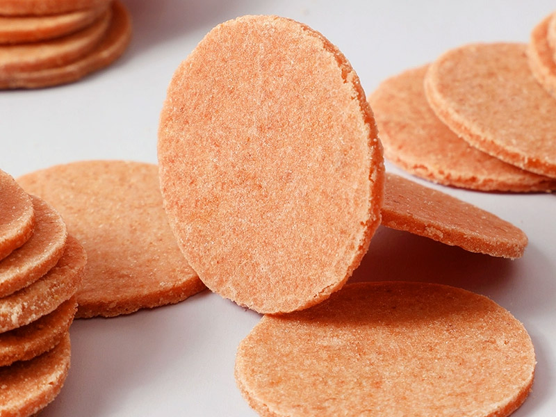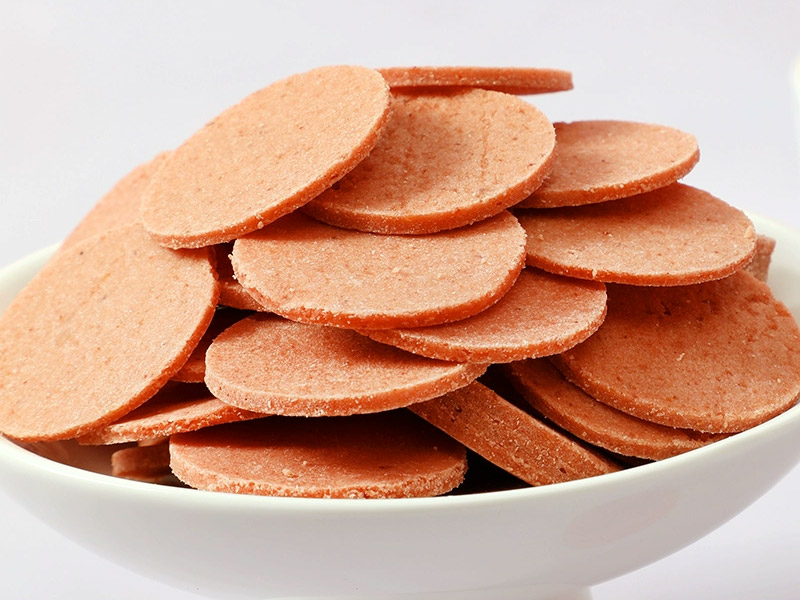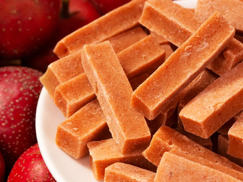 山楂糕:將熬制好的果漿倒入模具中,冷卻定型,再送入低溫烘干房,以適宜溫度和濕度進行烘干,使山楂糕達到 Q 彈有嚼勁的口感。 山楂片:將濃縮后的山楂泥均勻鋪在烘干盤上,通過多層網帶式烘干機進行分段烘干,精確控制各階段的溫度和風速,使山楂片達到酥脆可口的品質。